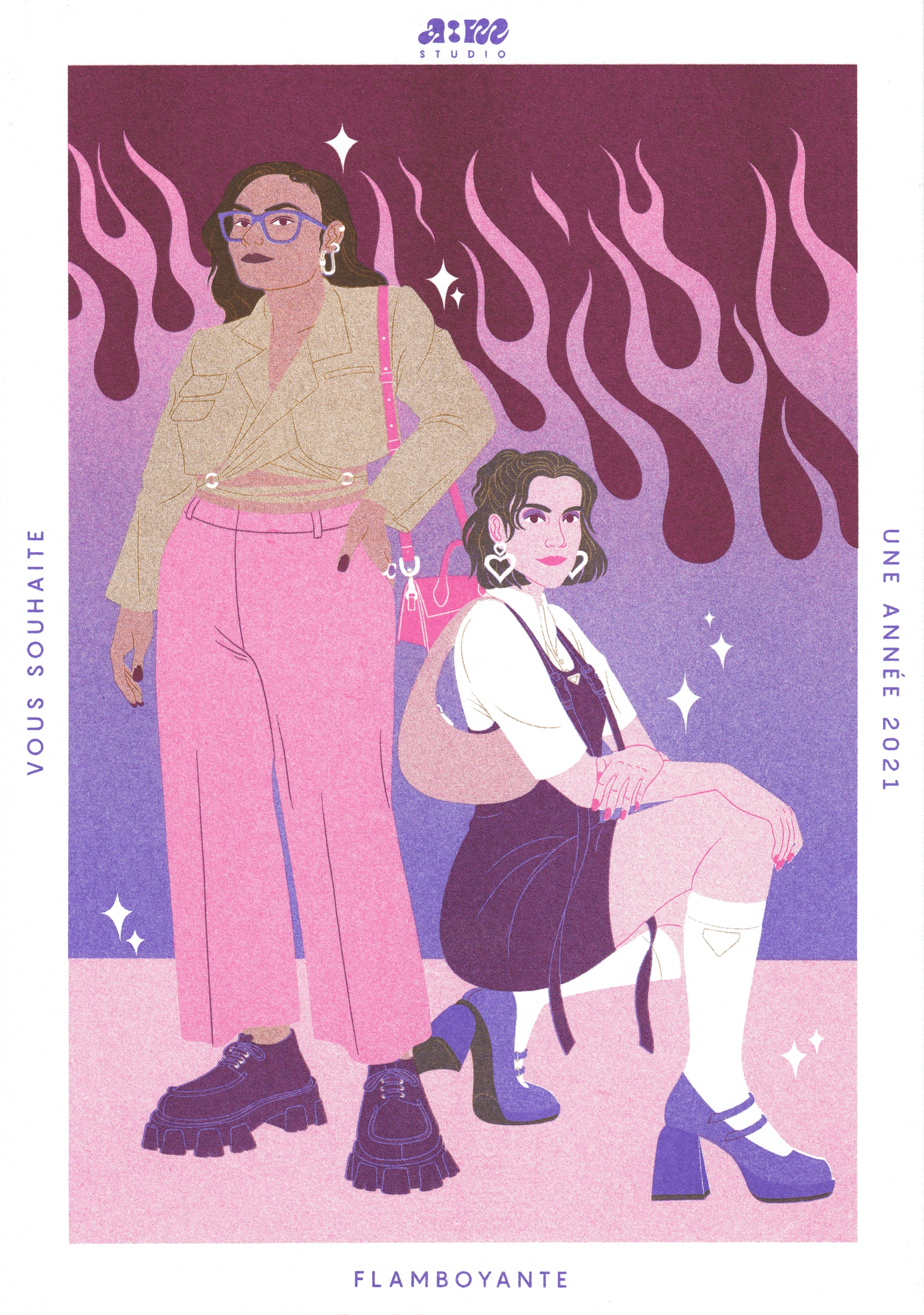 This risograph print portrays the two women behind the studio, and wishes a flamboyant year 2021 to its recipient.